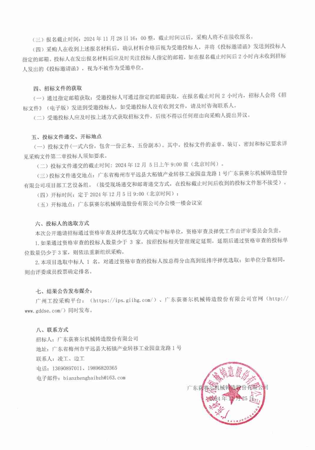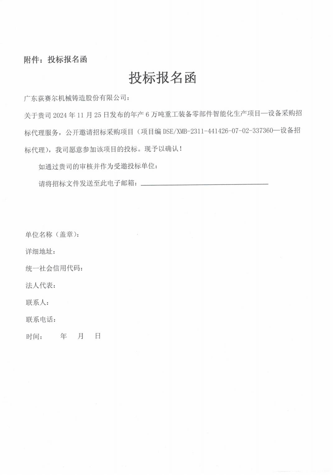 荻赛尔公司年产6万吨重工装备零部件智能化生产项目-设备采购招标代理服务项目公开邀请招标公告
