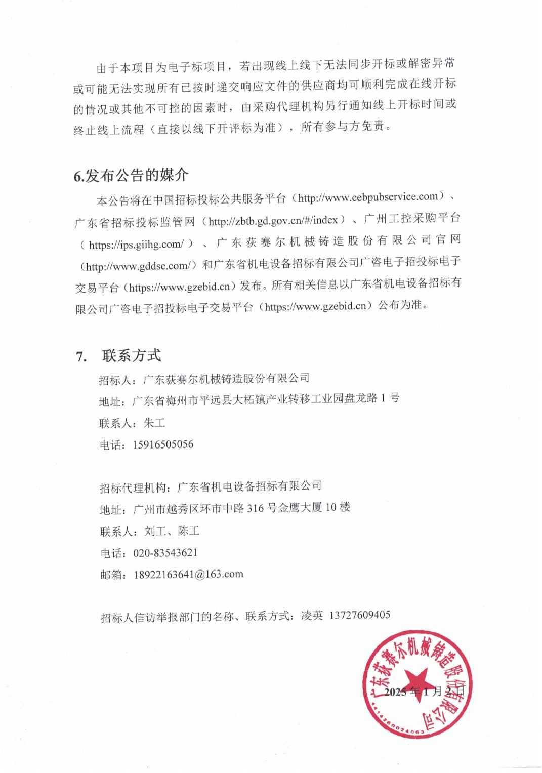 广东荻赛尔机械铸造股份有限公司年产6万吨重工装备零部件智能化生产线建设项目—两套(一拖二)10吨中频感应电炉采购招标公告