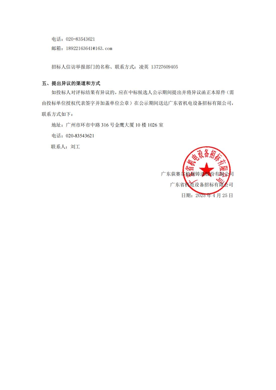 广东荻赛尔机械铸造股份有限公司年产6万吨重工装备零部件智能化生产线建设项目-浇注除尘系统采购-中标候选人公示