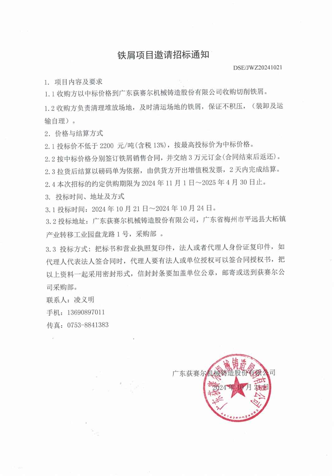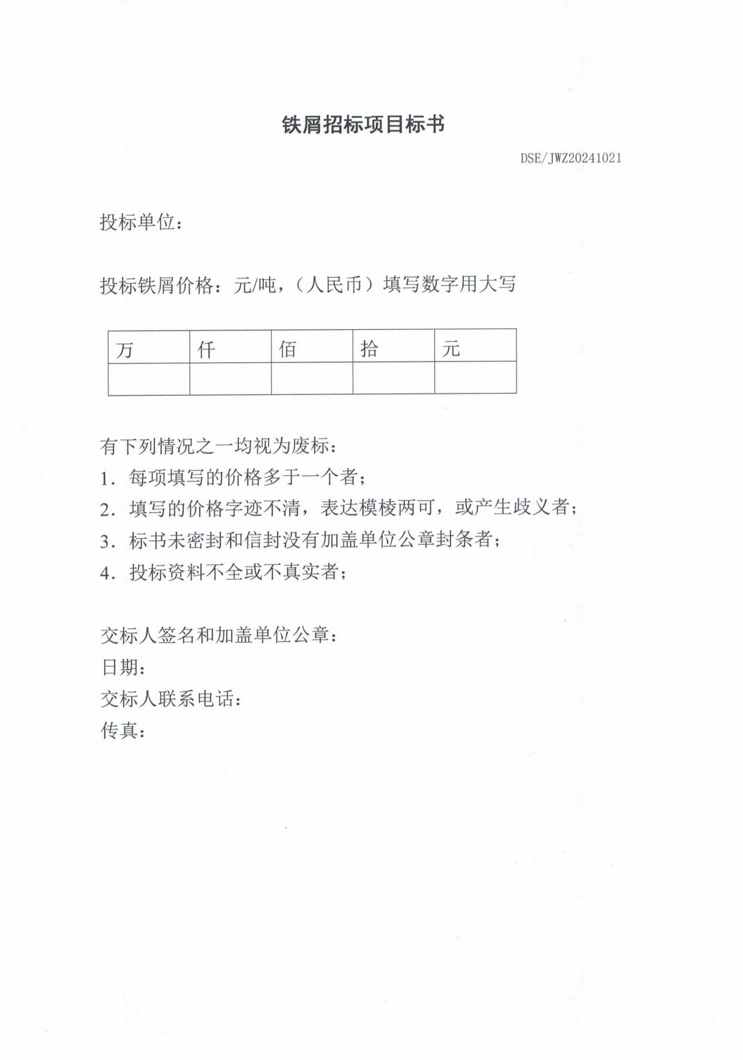 铁屑项目邀请招标通知