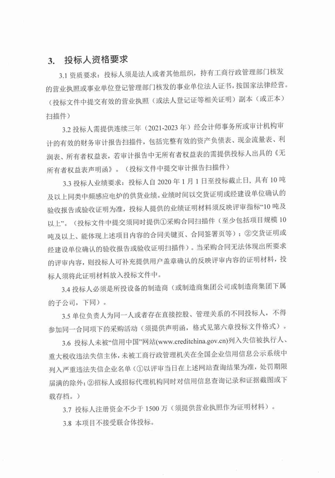 【发布版】招标文件-年产6万吨重工装备零部件智能化生产线建设项目—两套(一拖二)10吨中频感应电炉采购2025.1.2.DOC