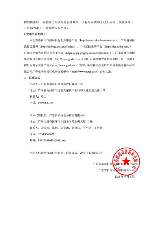 广东荻赛尔机械铸造股份有限公司年产6万吨重工装备零部件智能化生产线建设项目-涂装线及尾气处理设备-招标公告