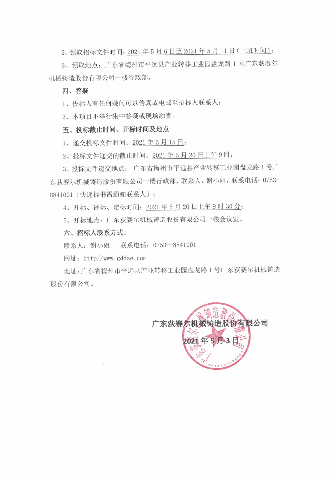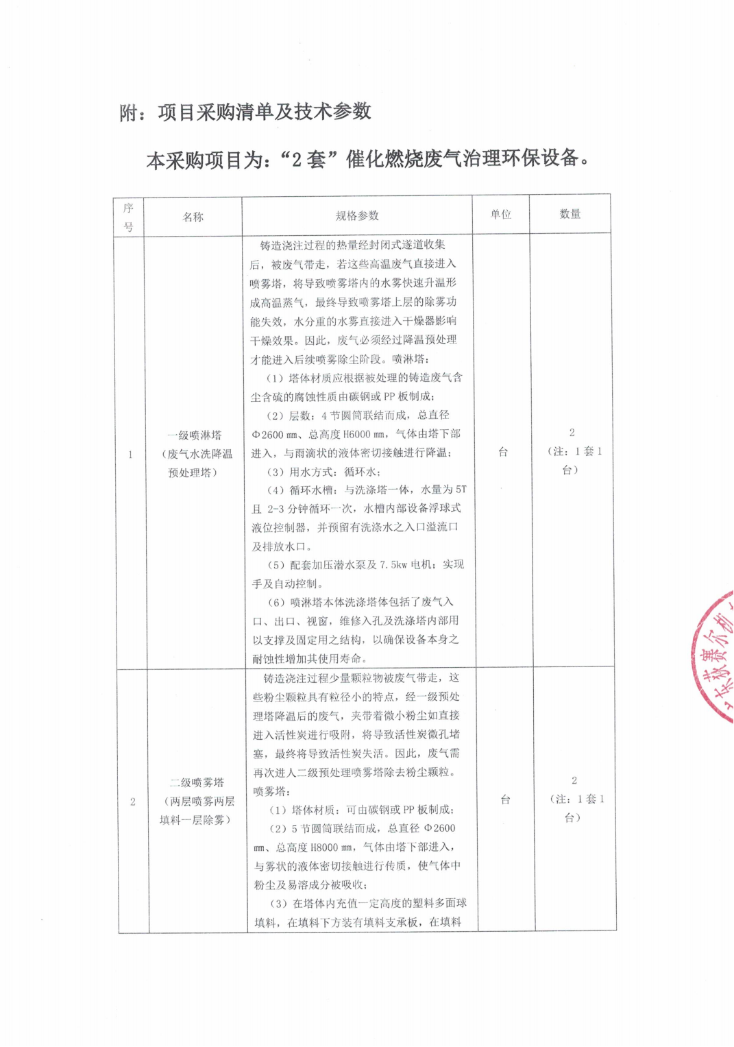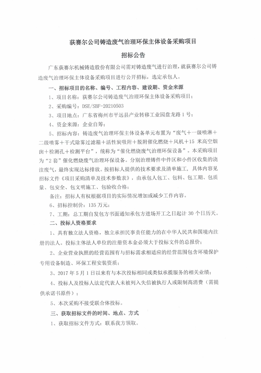 荻赛尔公司铸造废气治理环保主体设备采购项目招标公告