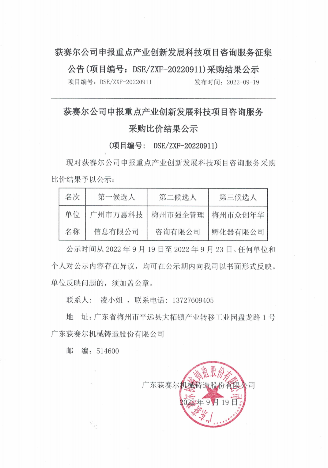 荻赛尔公司申报重点产业创新发展科技项目咨询服务采购比价结果公示