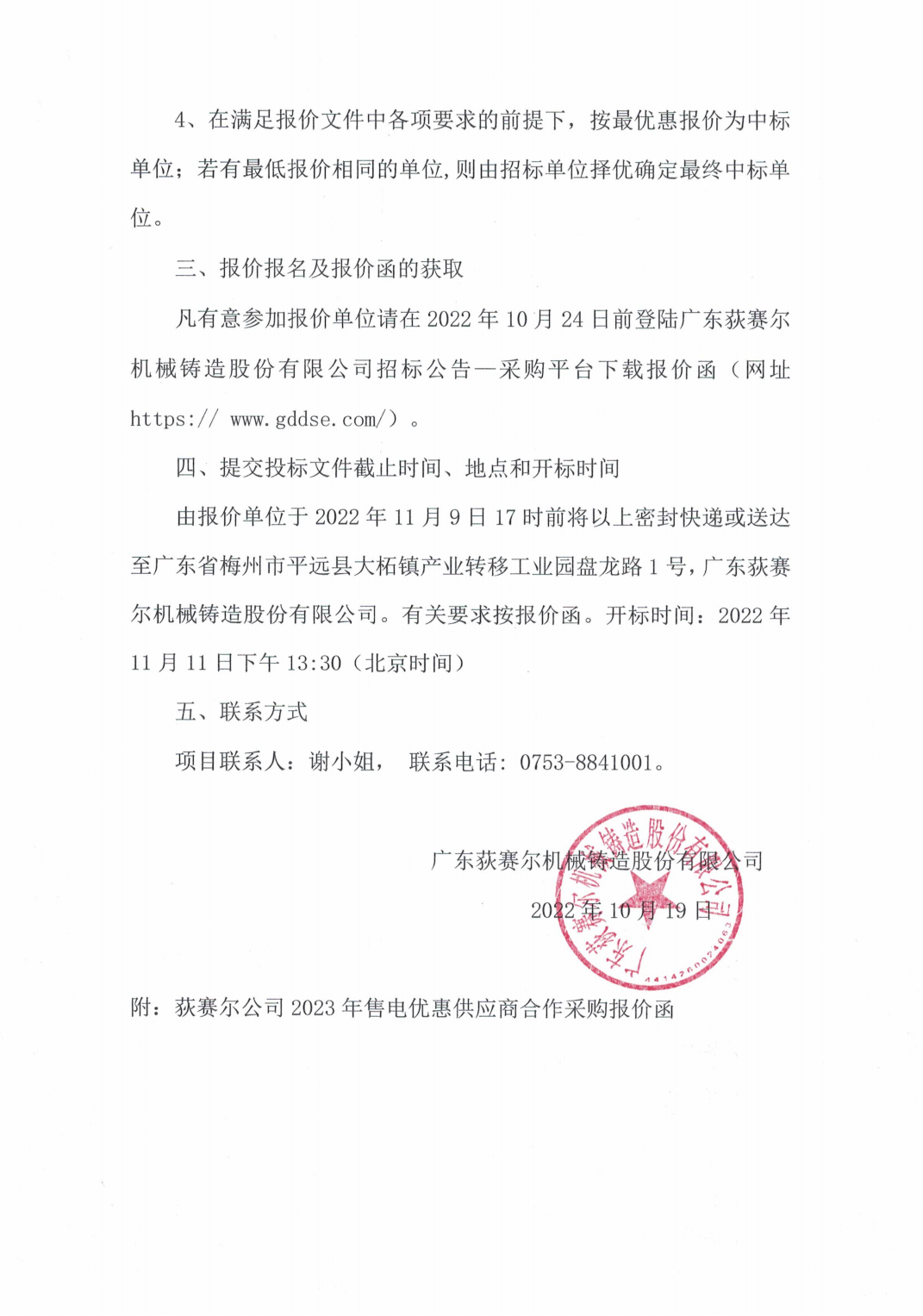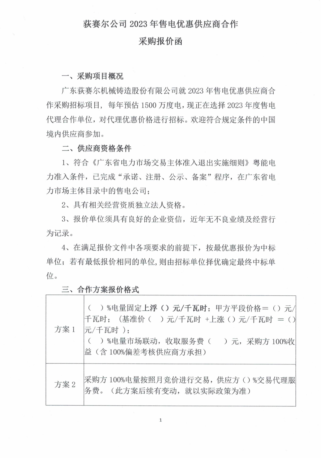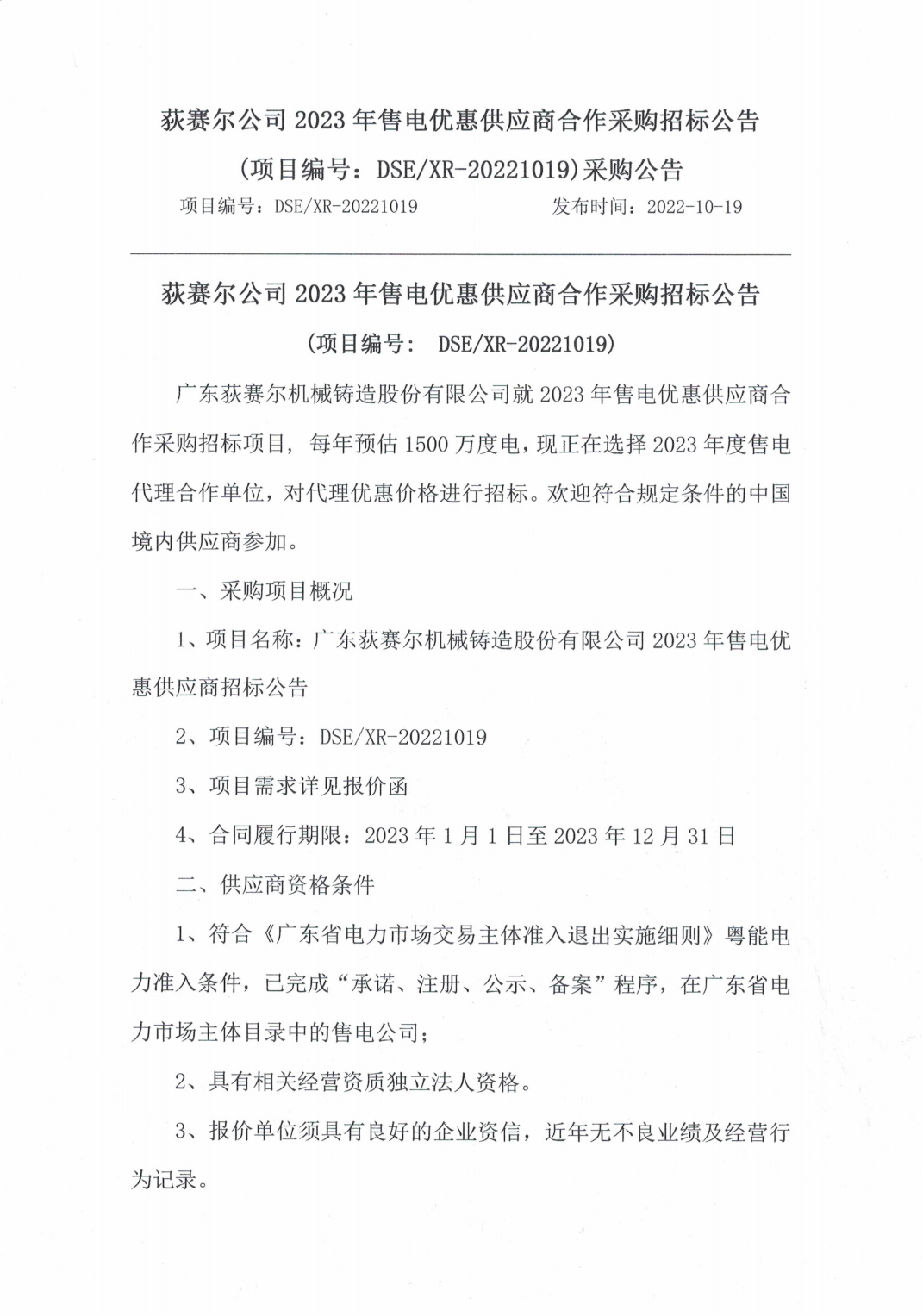 荻赛尔公司2023年售电优惠供应商合作采购招标公告