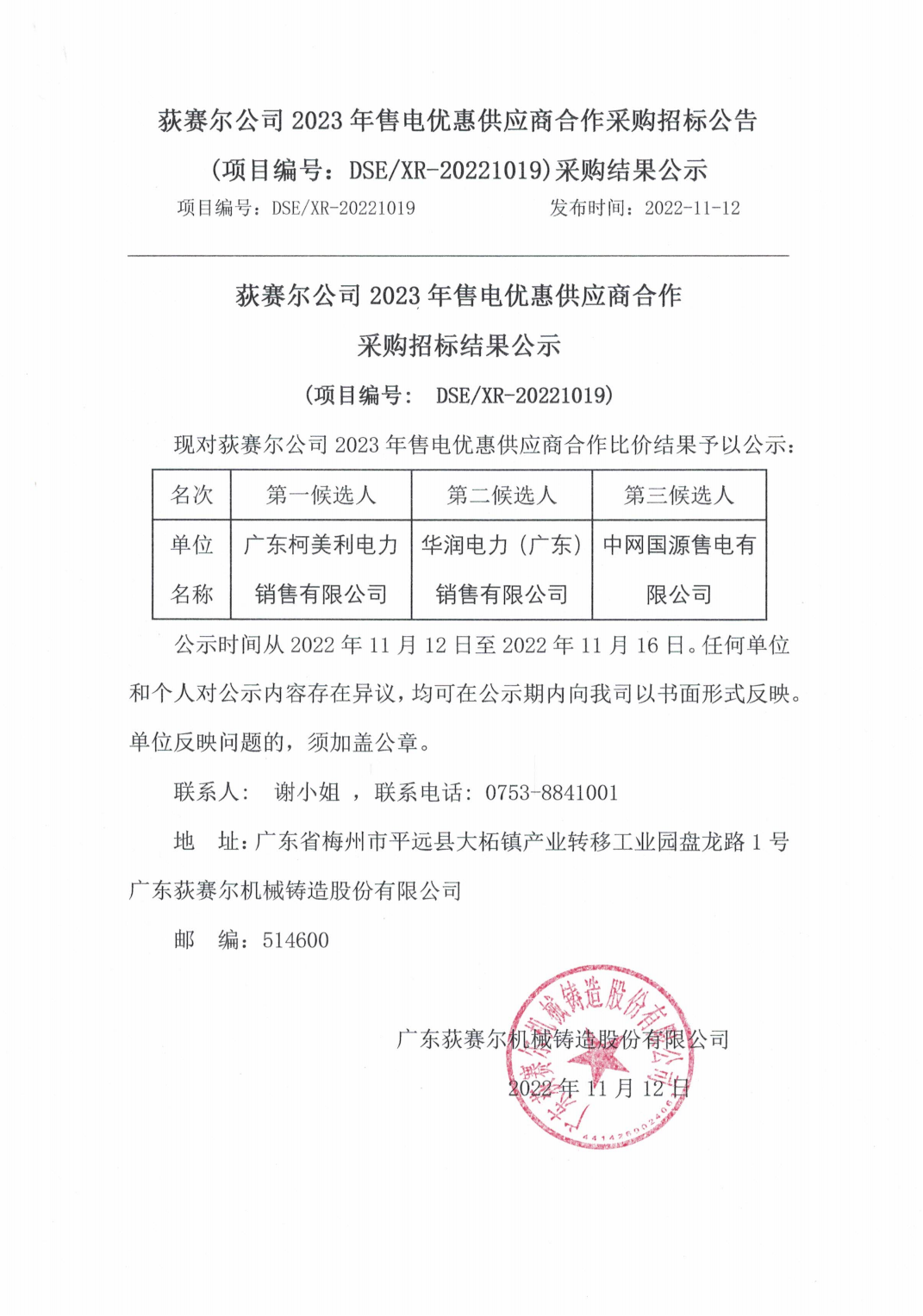 荻赛尔公司2023年售电优惠供应商合作采购公示