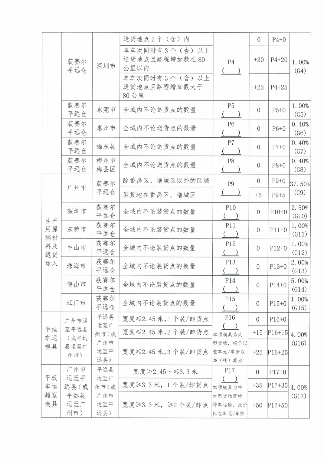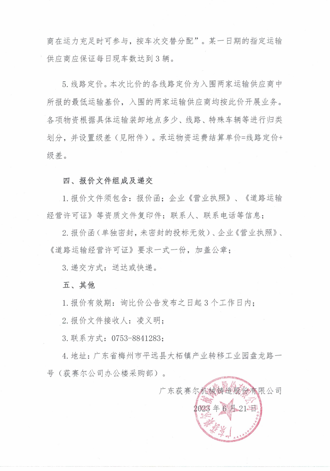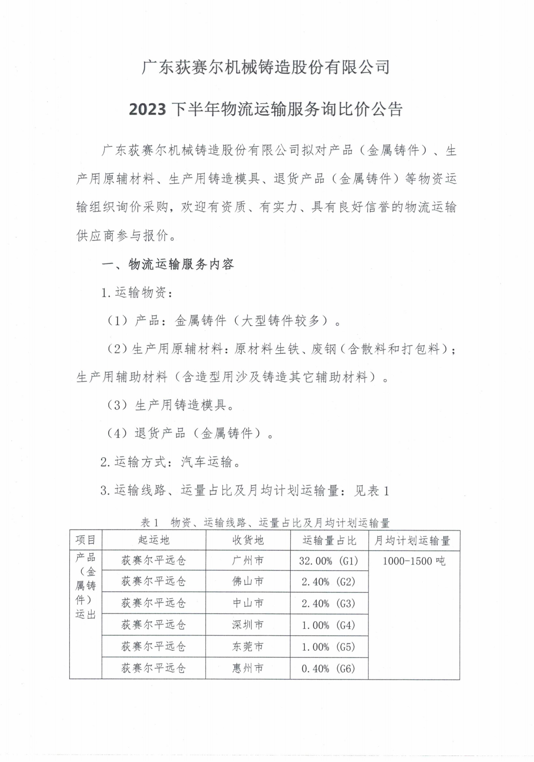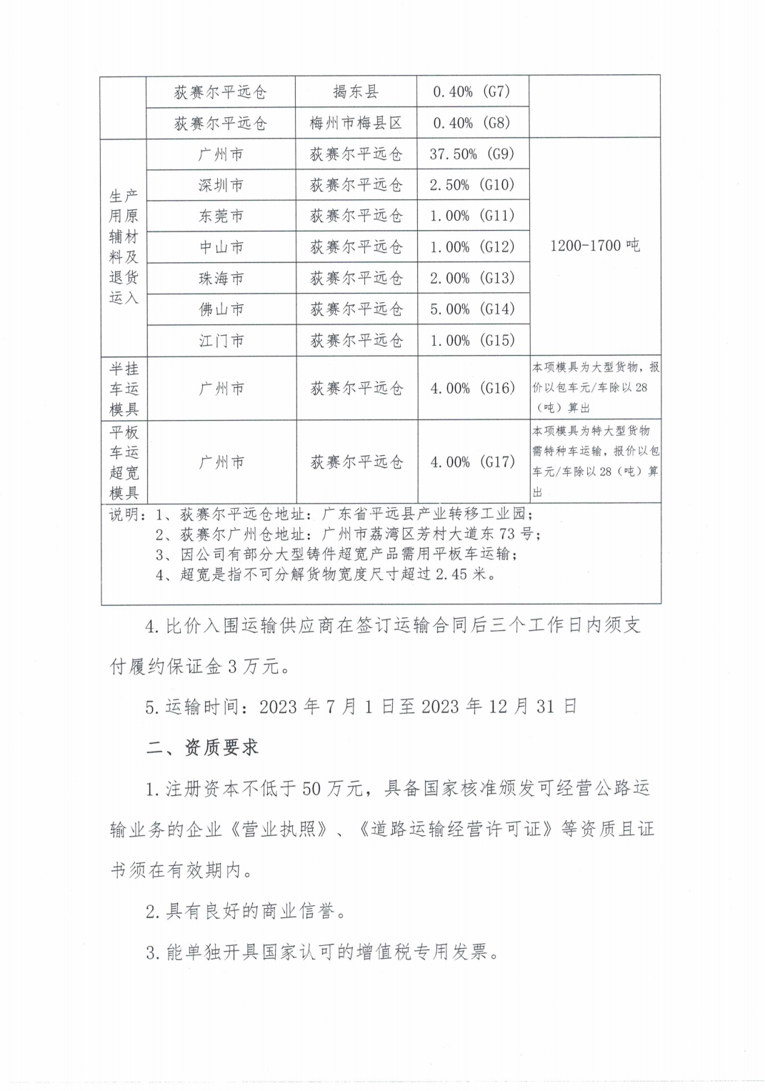 2023下半年物流运输服务询比价公告