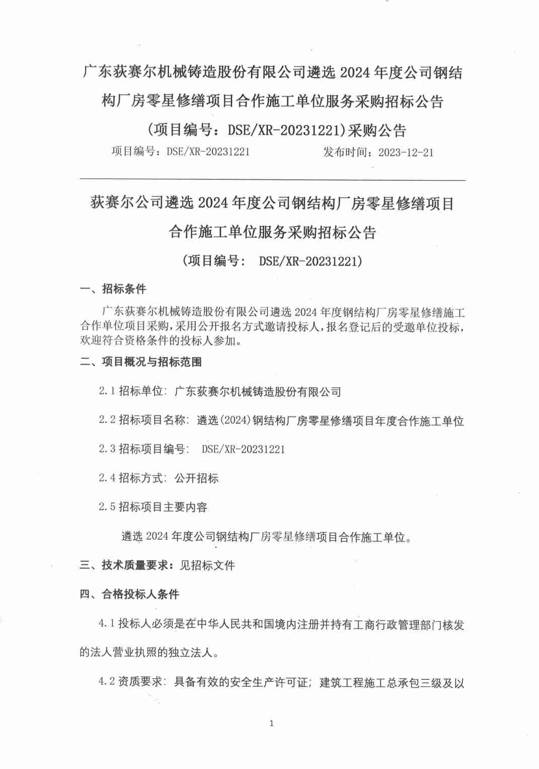 遴选2024年度公司钢结构厂房零星修缮项目合作施工单位服务采购招标