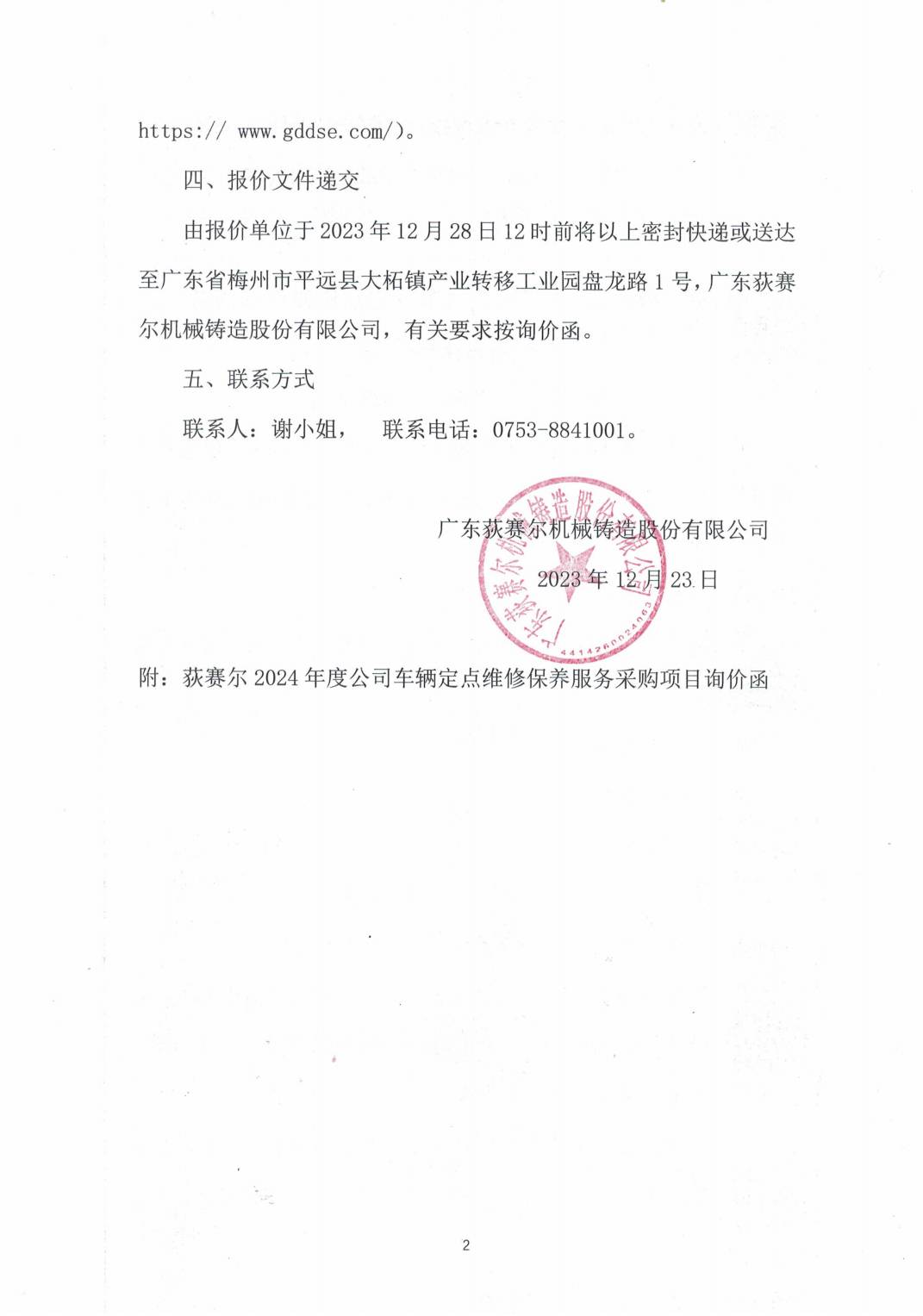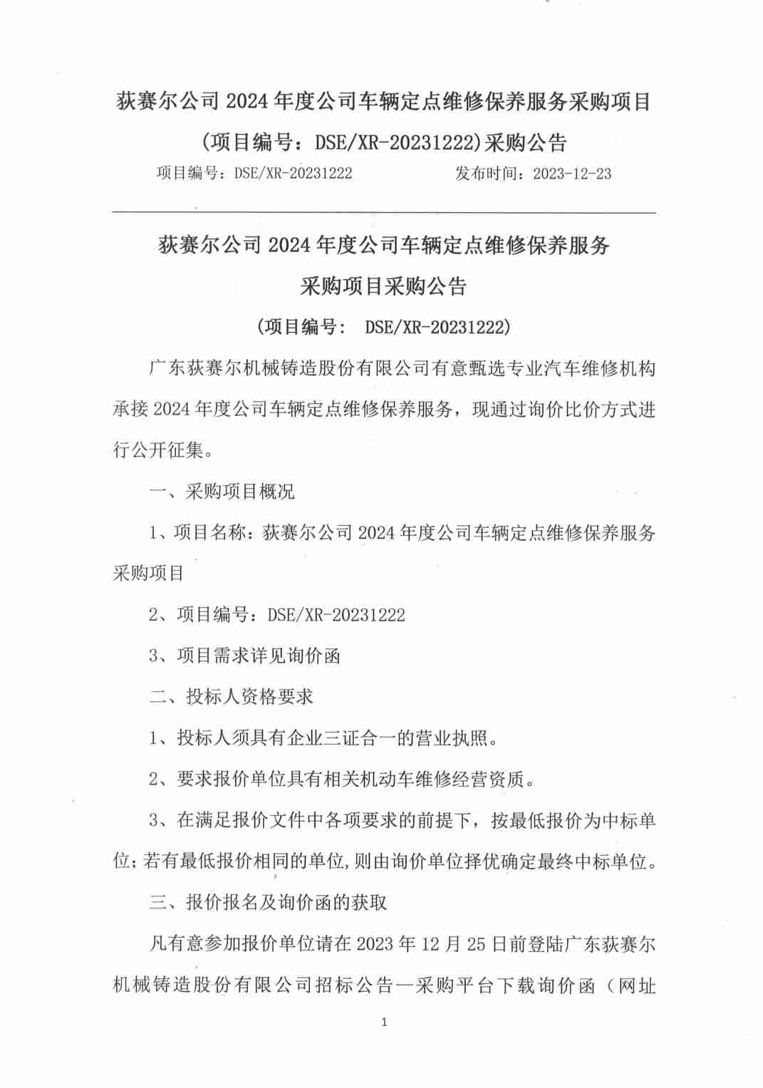 荻赛尔公司2024年度公司车辆定点维修保养服务采购项目