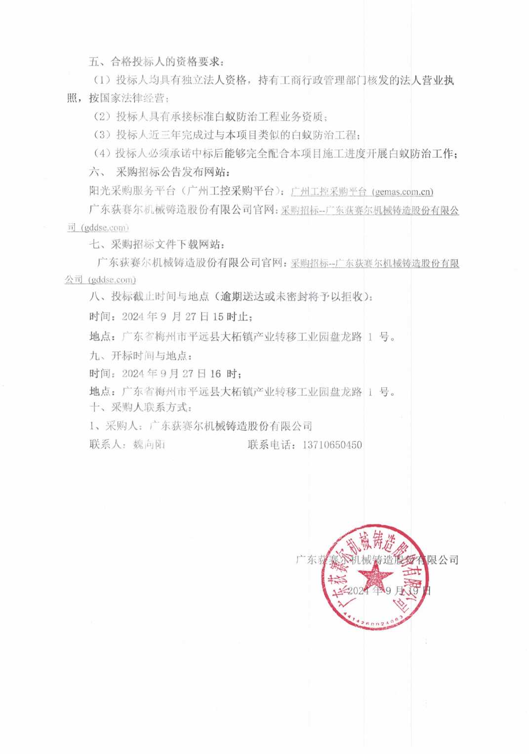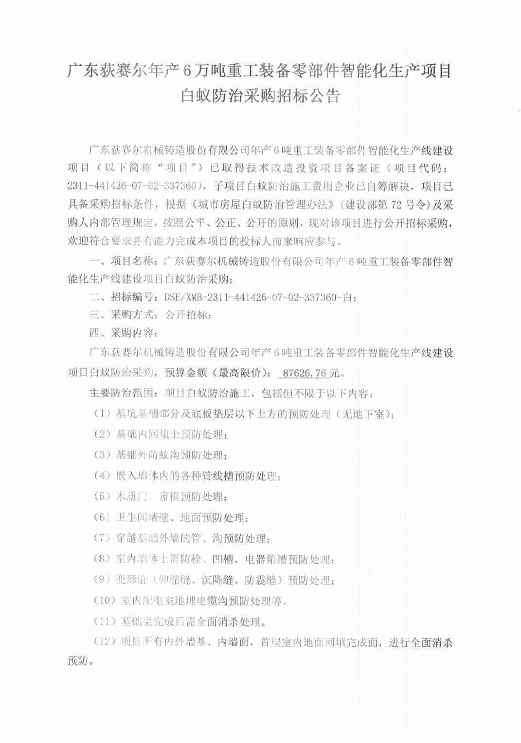 年产6万吨重工装备零部件智能化生产线建设项目 白蚁防治采购